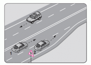39. Şekildeki iki yönlü yolda, 1 numaralı geçilen araç sürücüsünün aşağıdakilerden hangisini yapması doğrudur?
