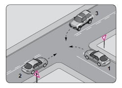 36. Şekildeki gibi sola dönüş yapacak olan sürücü, aşağıdakilerden hangilerini yapmalıdır?