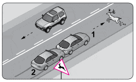 25. Şekle göre 1 numaralı araca arkadan çarpan 2 numaralı araç sürücüsü hakkında aşağıdakilerden hangisi kesinlikle söylenir?