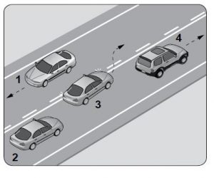 42. Şekle göre hangi numaralı aracın sürücüsü hatalıdır?