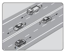 13. Şekle göre kontrolsüz kavşakta karşılaşan araçlardan hangisi ilk geçiş hakkını kullanmalıdır?