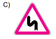 11. Aşağıdakilerden hangisi sağa tehlikeli devamlı viraj trafik işaretidir?