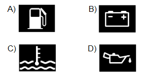 27. Seyir hâlindeyken aracın gösterge panelinde aşağıdaki ikaz ışıklarından hangisinin yanıyor olması derhal durmayı gerektirmez?