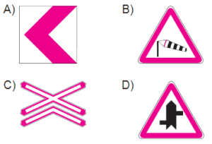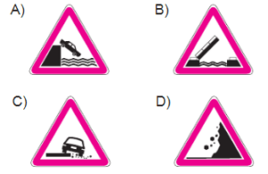 38. Aşağıdakilerden hangisi tehlikeli viraj yön levhasıdır?