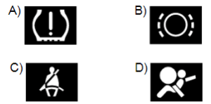 16. Aracın gösterge panelinde, aşağıdaki ikaz ışıklarından hangisinin yanıyor olması, emniyet kemerinin takılı olmadığını bildirir?