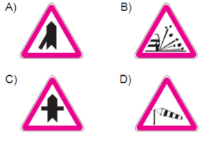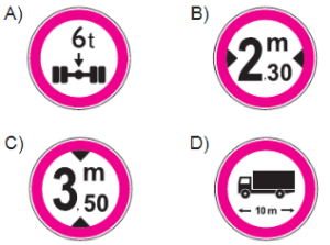 42. Aşağıdaki trafik işaretlerinden hangisi yükseklik anlamında gabari sınırlamasının olduğunu bildirir?