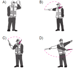 17. Aşağıdakilerden hangisi trafik görevlisinin geceleyin “dur” işaretidir?