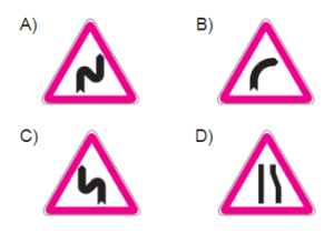 31. Aşağıdakilerden hangisi sağa tehlikeli devamlı viraj trafik işaretidir?