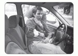 28. Resimde uygulaması gösterilen ve kazazedenin omuriliğine zarar verilmeden araçtan çıkarılmasında kullanılan tekniğe ne ad verilir?