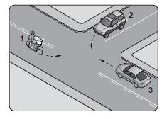 35. Şekildeki trafik işaretlerine göre 1 numaralı araç sürücü nasıl davranmalıdır?