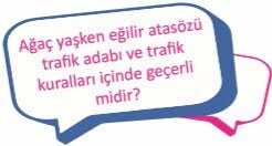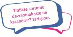 Trafikte yol kullanıcılarının birbirlerine karşı kaba ve saldırgan davranışları trafiği olumsuz etkilediği için bu tür tutum ve davranışlardan kaçınılmalı, bencil davranışlardan uzak durulmalıdır. Tedbirsiz, saygısız ve sorumsuz bir şekilde araç kullanan sürücüler kara yollarında birçok olumsuzluğu tetiklediği gibi kişilere zarar verecek şekilde yol kenarındaki su birikintilerine hızlı girip yayaları ıslatarak sorumluluk sahibi bir vatandaş ve sürücü olmadığını göstermektedirler. Trafiği tehlikeye sokarak can ve mal kaybına sebep olur. Ülke ekonomisine zarar verir. Birçok insanın yaralanmasına ve sakat kalmasına böylece insanların mutsuz olmalarına sebep olur. Trafikte sorumlu davran, beladan kurtul, kazançlı çık. Trafikte sorumlu davranmak size ne kazandırır? Tartışınız.
