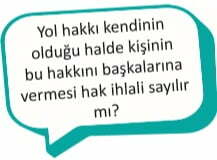 Örnek 2: Yağmurlu havada hızlı bir şekilde ana caddelerden geçerek yayaların ıslatılması yayaların haklarının ihlal edilmesidir.